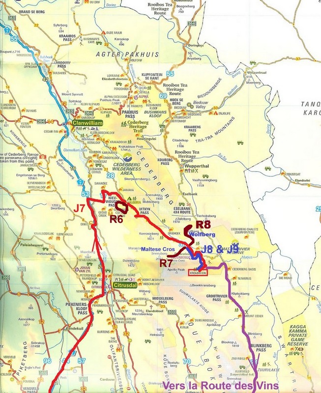 En fin de randonnée, nous reprenons les deux minibus et nous prenons la route vers le Cederberg que nous rejoindrons en 2 étapes.